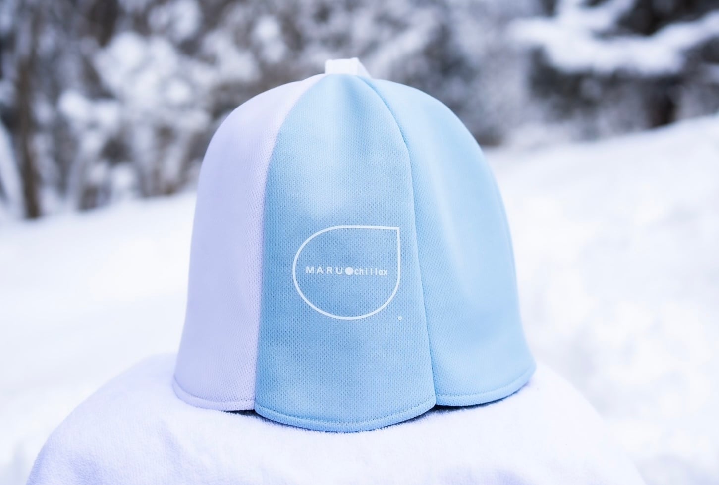 「空のハット」は、まるで空と雲を感じるような2色のサウナハットです。